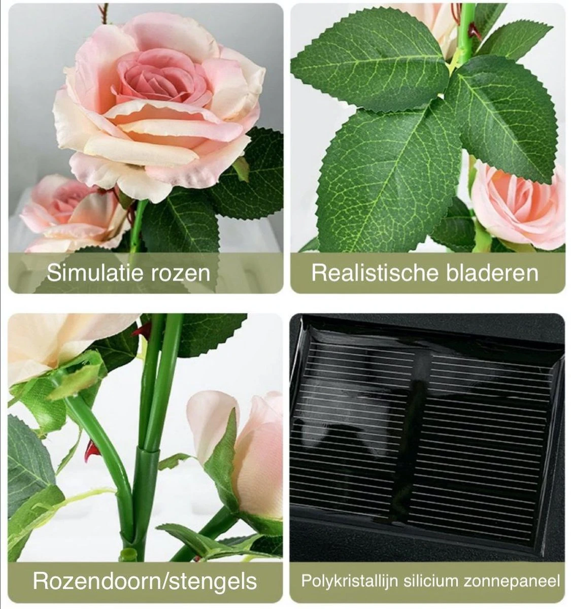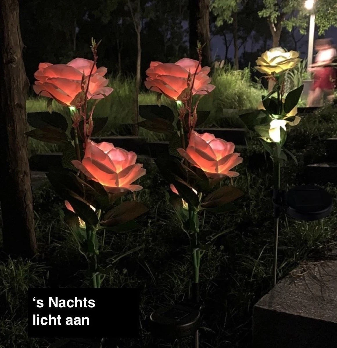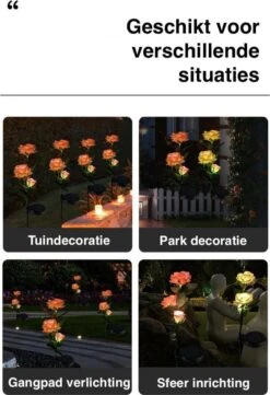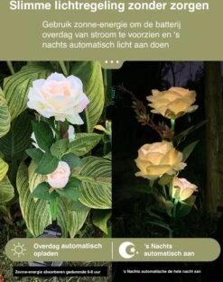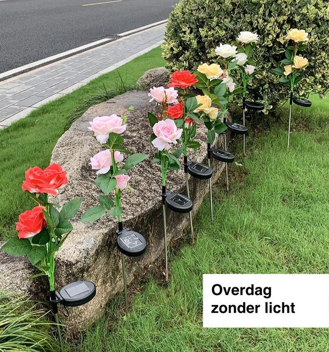 Iedereen wil wel eens zijn of haar tuin mooi en speciaal verlicht worden zonder extra elektriciteitskosten. Dan is deze set van 2 rozen lampen de perfecte keuze voor uw tuinverlichting. Deze lampen worden namelijk opgeladen via zonne-energie. Naast verlichting zijn deze rozen lampen ook perfect voor sfeer inrichting. U kunt deze rozen lampen overal gemakkelijk te plaatsen naar uw wens. Verder zijn deze rozen lampen geschikt voor buiten. Ze zijn waterdicht en kunnen goed tegen het slechte weer.