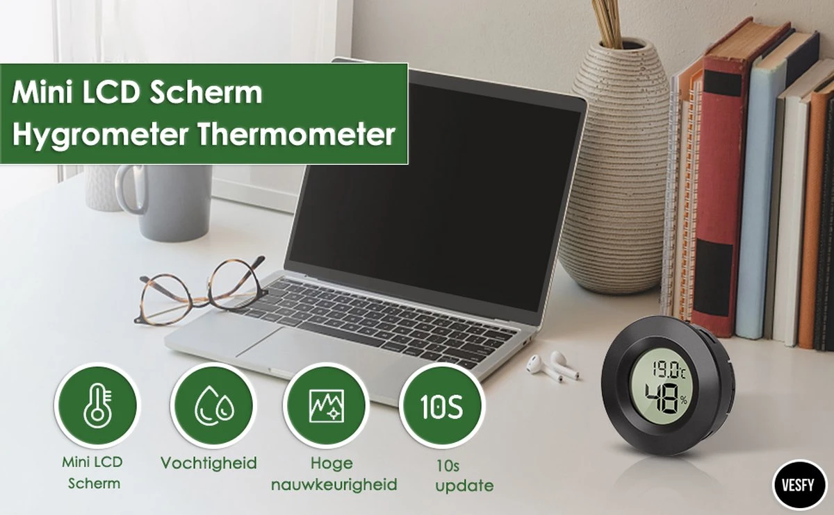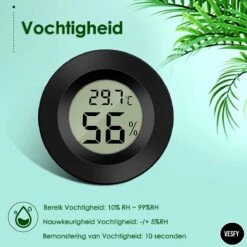 De Mini Thermometer met Hygrometer Luchtvochtigheidsmeter is een handige tool voor het meten van de luchtvochtigheid en temperatuur in verschillende omgevingen. Zo kun je bijvoorbeeld in huis, op kantoor of in de kas eenvoudig de luchtvochtigheid en temperatuur monitoren. Op basis van deze metingen kun je vervolgens de luchtvochtigheid en temperatuur regelen en eventueel een luchtbevochtiger gebruiken om de omgeving naar wens te optimaliseren.