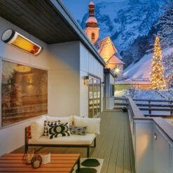 Dankzij het meegeleverde montagemateriaal kan de terasverwarming eenvoudig en probleemloos aan de muur bevestigd worden.