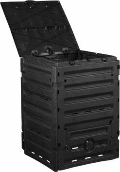 Dit Nature thermo-compostvat is perfect voor snel en eenvoudig composteren. Deze thermo-compostbak is gemaakt van zwartkleurig robuust polypropyleen. De montage is eenvoudig en snel dankzij het in elkaar grijpende scharniersysteem. Deze bak heeft een inhoud van 300 liter en is volledig inklapbaar voor eenvoudige opslag. De bak heeft twee openingen: een scharnierende kap voor het plaatsen van afval en een deur aan de voorzijde om de compost om te keren en om het verwijderen van de compost te vergemakkelijken. De toevoeging van thermoset tijdens het fabricageproces van de zijwanden bevordert zowel de temperatuurstijging als de constantheid en zorgt voor een snellere afbraak van het afval.