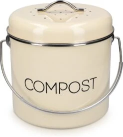 - De handige draagbeugel zorgt ervoor dat je de emmer makkelijk mee kunt nemen om de inhoud te legen in de organische afvalbak. Omdat het woord compost duidelijk te lezen is op de bak, weten ook gasten waar ze hun afval kunnen deponeren.