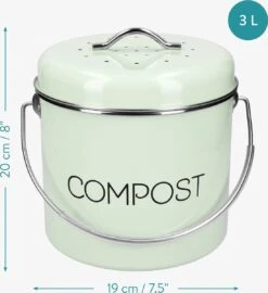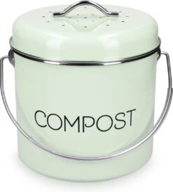 - De handige draagbeugel zorgt ervoor dat je de emmer makkelijk mee kunt nemen om de inhoud te legen in de organische afvalbak. Omdat het woord compost duidelijk te lezen is op de bak, weten ook gasten waar ze hun afval kunnen deponeren.