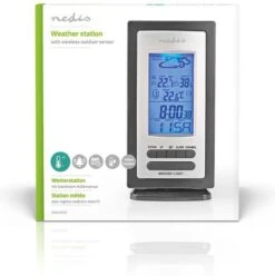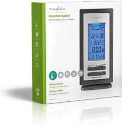 Nedis Weerstation – Binnen & Buiten – Inclusief Draadloze Weersensor – Weersvoorspelling – Tijdweergave – LCD-Scherm – Wekkerfunctie