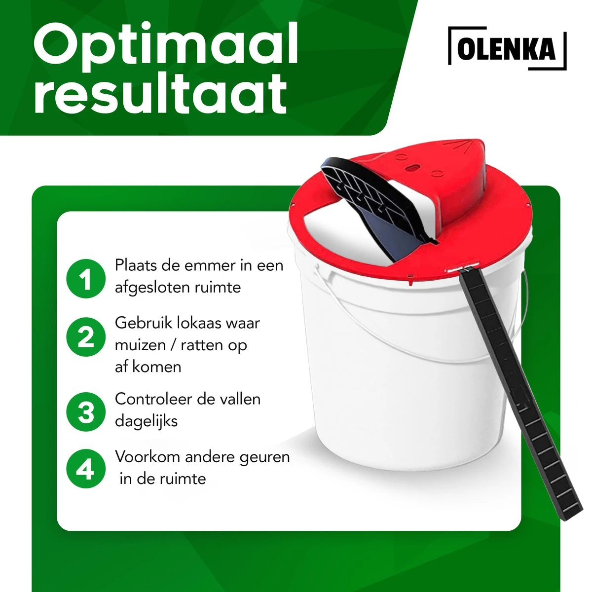 Heb jij ook zo een hekel aan muizen en ratten in of rondom jouw huis? Dan is de diervriendelijke muizenval van Olenka de juiste oplossing om dit probleem tegen te gaan. Met deze muizenval hoef jij je geen zorgen te maken of het dier pijn lijdt. Het makkelijke aan deze muizenval is dat er een bijpassende emmer geleverd wordt waarmee u de muizenval er makkelijk op klikt, daarmee bespaart u tijd en geld!