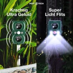 Effectieve technologie: Door de dubbele zender met wisselende frequenties en de LED-lichtflitsen jaagt u ongewenste dieren effectief en langdurig weg.