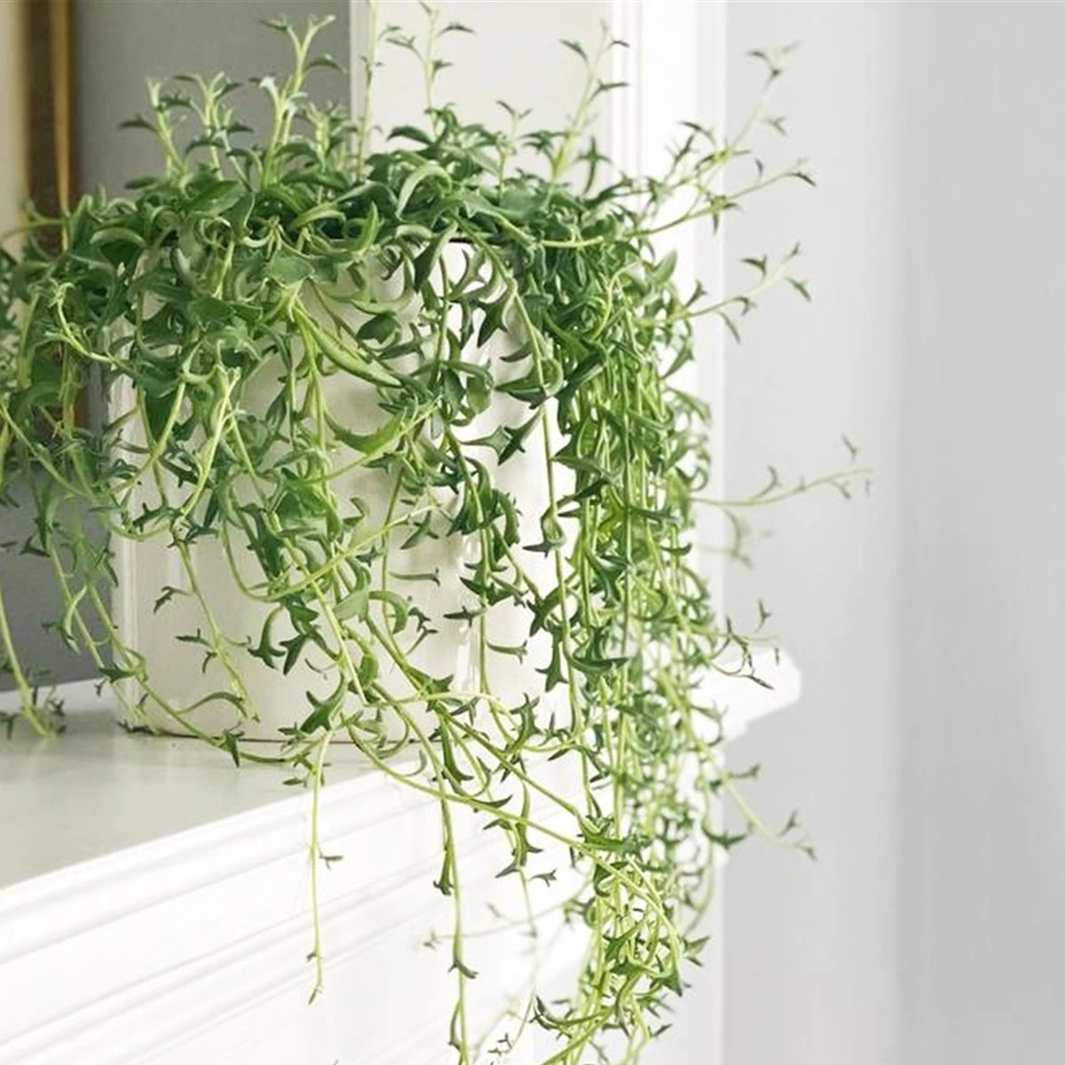 Deze bijzondere kamerplant wordt in het Nederlands ook wel dolfijnenplant of dolfijnenketting genoemd. De blaadjes van dit leuke plantje lijken namelijk sprekend op springende dolfijnen!