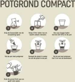 Deze compacte instant potgrond is een wateroplosbare potgrond die bestaat uit gecomposteerde kokosvezel. Deze zijn afkomstig van de zachte kokosbast. De grond is 100% natuurlijk én verrijkt met voeding voor 2 maanden. Pokon Potgrond Compact is een samengeperste pure en eerlijke basis voor potplanten.