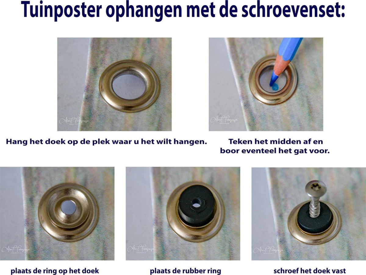 Voor het ophangen van een tuinposter middels schroeven.