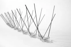 De duivenpinnen zijn op een 335mm lange strip van polycarbonaat kunststof aangebracht. De afstand tussen de pinnen bedraagt 32mm. Op de transparante en UV bestendige kunststof basisstrip bevinden zich in totaal 20 pinnen. De 110mm lange pinnen hebben aan de bodem een doorsnede van 3 mm en aan de top een doorsnede van 1mm.