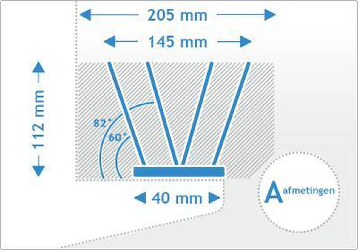 - Netto breedte van de basisstrip: 40 mm boven / 145 mm onder