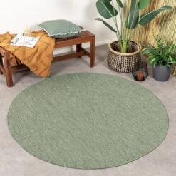 Rond buitenkleed – Costa Groen brengt sfeer en kleur in je buiteninterieur! Rond buitenkleed Costa is dé nieuwe budgettopper van FRAAI | Home & Living. Met de gezellige en zomerse kleur tovert goedkoop buitenkleed Costa een lach op je gezicht en niet alleen vanwege de vrolijke kleur! Goedkoop buitenkleed Costa bestel je al voor een prikkie! Deze budgettopper heeft een gemêleerd design waardoor jij dit goedkope buitenkleed in iedere buitenruimte kan neerleggen. Of je het buitenkleed nu neerlegt in je tuinhuisje, op de veranda of bij het zwembad. Rond buitenkleed Costa Groen is bestand tegen spetters dankzij het kunststof materiaal polypropyleen. Zo kan jij het buitenkleed buiten laten liggen tijdens de meest onverwachtse regenbuien! Waar ga jij buitenkleed Costa neer liggen?