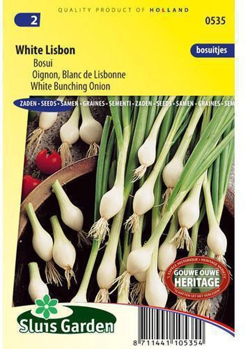 Witte, ovaalronde bosuitjes en rechtopstaand donkergroen blad. De uitjes zijn lang houdbaar. Rauw gebruiken in bijv. uw salades. Dun zaaien direct in de vollegrond op regels (regelafstand 25 cm en plantafstand 5 cm) en het zaad goed afdekken. Ui is een echte donkerkiemer. De grond continu vochtig houden. Na opkomst niet al teveel uitdunnen. De grond licht bemesten, bij voorkeur met compost. Oogsten kan al in de vroege zomer.