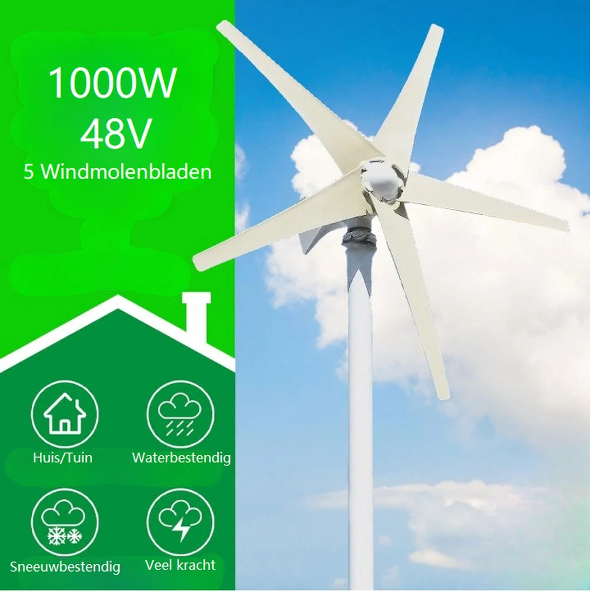 Verlicht of verwarm je huis met de SMARAAD-windmolen. De SMARAAD is bestendig tegen elke weersituatie wind, sneeuw, regen en bliksem.