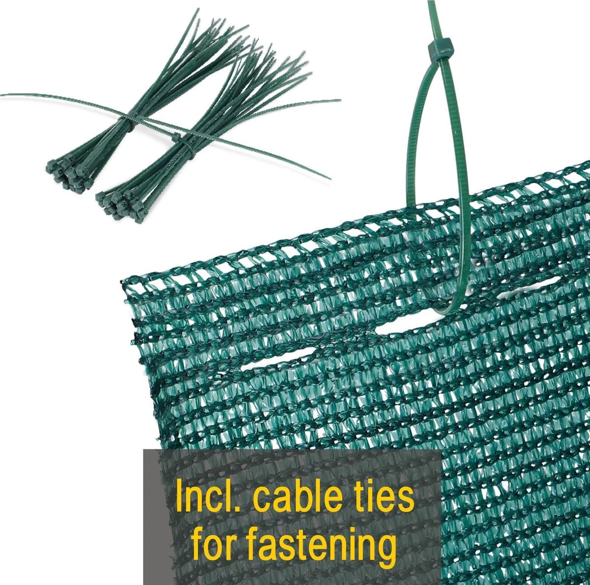 De stof is ademend en laat lucht en vocht door, zodat schimmel geen kans krijgt. Het schaduwdoek biedt een uitstekende UV-bescherming. Schadelijke UV-straling wordt geblokkeerd, waardoor uw tuin en bloembedden worden beschermd. Dit zichtdoek is verkrijgbaar in antraciet of groen, elk met een hoogte van 100, 150 tot 200 cm. Voor de breedte kunt u kiezen tussen 1000cm, 2500cm en 5000cm.