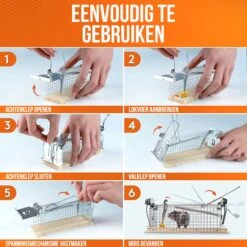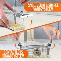 Deze set bevat 2 diervriendelijke muizenvallen. Deze diervriendelijke muizenval is de perfecte oplossing voor iedereen die geen gif wilt gebruiken en op een humane manier van de muizen af wil.