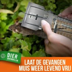 Met deze diervriendelijke muizenval kun je na het vangen de muis weer loslaten op de juiste plek. Door een combinatie van de grote opvang kooi en de speciale staartbescherming aan de valdeur weet je zeker dat de muis zich niet verwond terwijl deze wordt gevangen.
