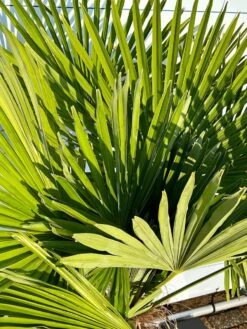 Opvallende bladeren: De palm heeft grote, groene bladeren die gemakkelijk te identificeren zijn en een stevige stam die hem een tropisch uiterlijk geeft, waardoor hij een ideale keuze is voor het creëren van een tropische sfeer in elke tuin.
