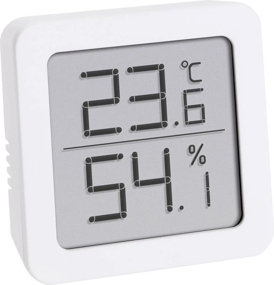 De digitale thermo-hygrometer van TFA Dostmann is een ideaal meetinstrument voor de bewaking van het binnenklimaat. De kamertemperatuur en luchtvochtigheid kunt u eenvoudig in het oog houden en door gericht verwarmen en ventileren regelen. Zo schept u een behaaglijk en gezond woonklimaat en bespaart zelfs op verwarmingskosten. Het eenvoudige en compacte design van de thermo- en hygrometer past in elke woonruimte. De praktische magnetische houder kunt u als standaard gebruiken of met de kleefpad moeiteloos op veel oppervlakken bevestigen.