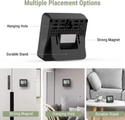 Kleine thermometer heeft een opvallend groot display. Digitale thermometer met tafelstandaard, aan de muur te monteren en magnetische achterkant om overal uw luchtkwaliteit te bewaken!