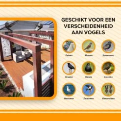 De kit werkt voor meerdere soorten plaagvogels zoals duiven, mussen, spreeuwen, kraaien, merels, grackles, meeuwen, zwaluwen, vleermuizen en zelfs klimmende dieren.