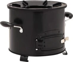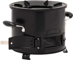 Deze camping houtkachel dient als kookgerei tijdens je buitenactiviteiten en creëert tegelijkertijd wat extra warmte en een gezellige sfeer als het kouder wordt.