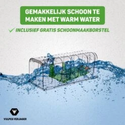 De muizenval is gemakkelijk te wassen met water en zeep, zo hou je hem goed schoon voor in huis. Je hoeft zo ook niet bang te zijn voor bacteriën van muizen of ratten wanneer je hem in je tuin hebt staan. Na een flinke beurt wassen met warm water en goede zeep is de muizenval weer helemaal schoon! Daarnaast bieden we je graag een handige schoonmaakborstel erbij aan voor extra hygiëne.