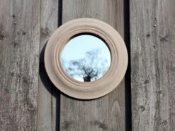 Deze glazen wandspiegel is de perfecte decoratie voor uw huis. Hij kan zowel binnen- als buitenshuis gebruikt worden. De spiegel kan eenvoudig aan de muur of schutting worden gemonteerd. Door het houten frame en de natuurlijke kleur krijgen onze spiegels elk een uniek karakter.