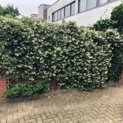 De Toscaanse Jasmijn (Trachelospermum Jasminoidus) is een jasmijn plant die groenblijvend/wintergroen is in de winter.