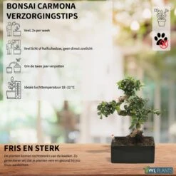 WL Plants – Bonsai Carmona – Bonsai Boompje – Kamerplanten – Unieke Kamerplant – ± 35cm Hoog – 22cm Diameter – In Keramieke Zwarte Pot