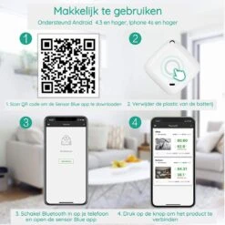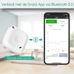 - Draadloze APP Bediening – Temperatuursensor uploadt gegevens naar de app wanneer er verbinding mee wordt gemaakt via Bluetooth. U kunt de maximale en minimale waarden van temperatuur en vochtigheid op APP controleren. Eén smart-apparaat kan tegelijkertijd worden aangesloten op maximaal 100 temperatuursensoren en ondersteunt Android 4.3 of hoger, iphone 4s of hoger