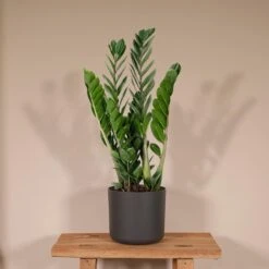 De Zamioculcas Zamiifolia is een makkelijke, groene kamerplant. Deze kamerplant komt oorspronkelijk uit Zanzibar, Kenia en Madagaskar. De plant staat ook wel bekend als de ZZ-plant. Geef de Zamioculcas een plek in halfschaduw. Wat meer zon is ook geen probleem. De bladeren van de Zamioculcas groeien naar het licht. Draai de plant regelmatig om om scheef groeien te voorkomen. Als de bladeren naar het plafond wijzen weet je dat de plant op de perfecte plek staat. Deze kamerplant slaat water op in de stam en in de wortels. Hierdoor hoef je niet vaak water te geven. Eens per twee weken in de zomer en eens per 3 weken in de winter is voldoende. Let op: planten zijn een levend product en kunnen afwijken van de foto en omschrijving. Onze planten worden geleverd in een plastic kweekpot. Alle planten worden direct verpakt en verzonden vanuit de kwekerij.