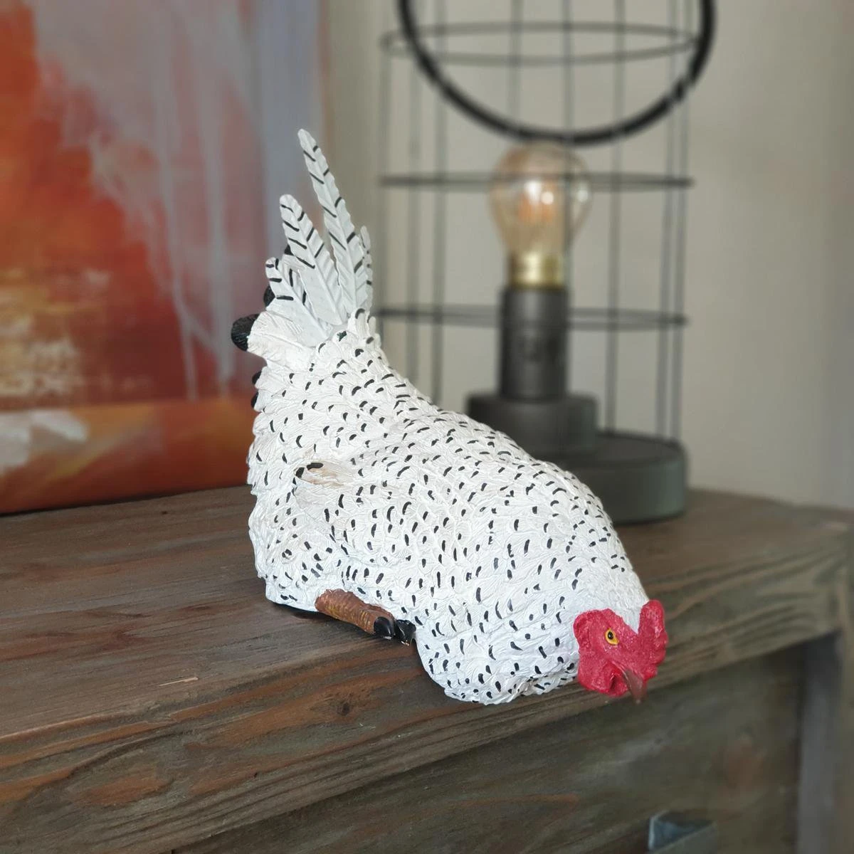Het kippen beeld kan als decoratie voor binnen en buiten, dit vrolijke beeld staat gewoon overal leuk. Plaats hem op de rand van je vensterbank, je kast of bloembak en geniet dagelijks van de mooie uitstraling en zijn vrolijke kopje.